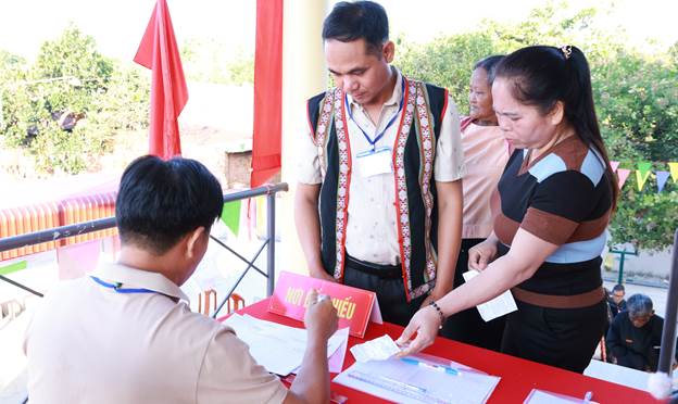 Tỉnh ủy viên, Bí thư Đảng ủy, Chủ tịch HĐND xã Đa Kia Lý Trọng Nhân tham dự khai mạc tại khu vực bỏ phiếu số 25 – Thôn 9, xã Đa Kia