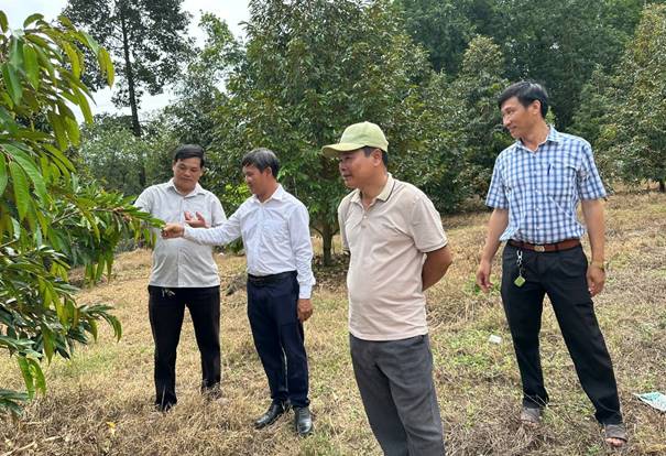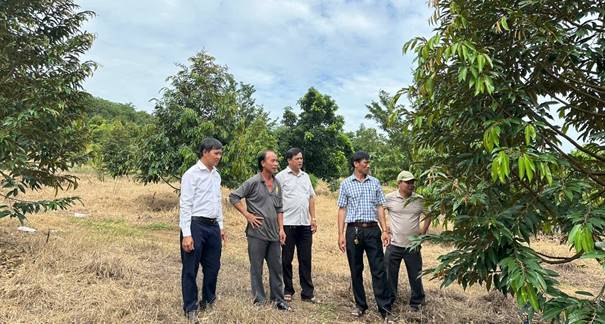 Tại buổi làm việc, đoàn công tác đã trực tiếp thăm vườn, trao đổi với các hội viên nông dân về tình hình sản xuất, những thuận lợi, khó khăn trong quá trình canh tác. Nhiều hội viên chia sẻ thực tế, trong bối cảnh thời tiết thất thường và thị trường tiêu thụ chưa ổn định, việc trồng sầu riêng đòi hỏi kỹ thuật cao, vốn đầu tư lớn và công chăm sóc thường xuyên. Tuy nhiên, nhờ giá sầu riêng duy trì ở mức cao trong 2–3 năm trở lại đây, nhiều hộ sau khi trừ chi phí đầu tư vẫn có thu nhập khá ổn định, góp phần cải thiện đời sống và kinh tế hộ gia đình.