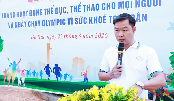 Thiết thực hưởng ứng cuộc vận động “Toàn dân rèn luyện thân thể theo gương Bác Hồ vĩ đại”, sáng ngày 22/3/2026, UBND xã Đa Kia tổ chức lễ phát động tháng hoạt động thể dục thể thao cho mọi người và ngày chạy Olympic vì sức khỏe toàn dân năm 2026. Đồng chí Đặng Hữu Khoái, Phó Bí thư, Chủ tịch UBND xã; các đồng chí trong BTV Đảng ủy, BCH Đảng bộ, lãnh đạo các cơ quan, đơn vị chuyên môn, lực lượng vũ trang, công chức, viên chức và đông đảo học sinh trên địa bàn tham dự.