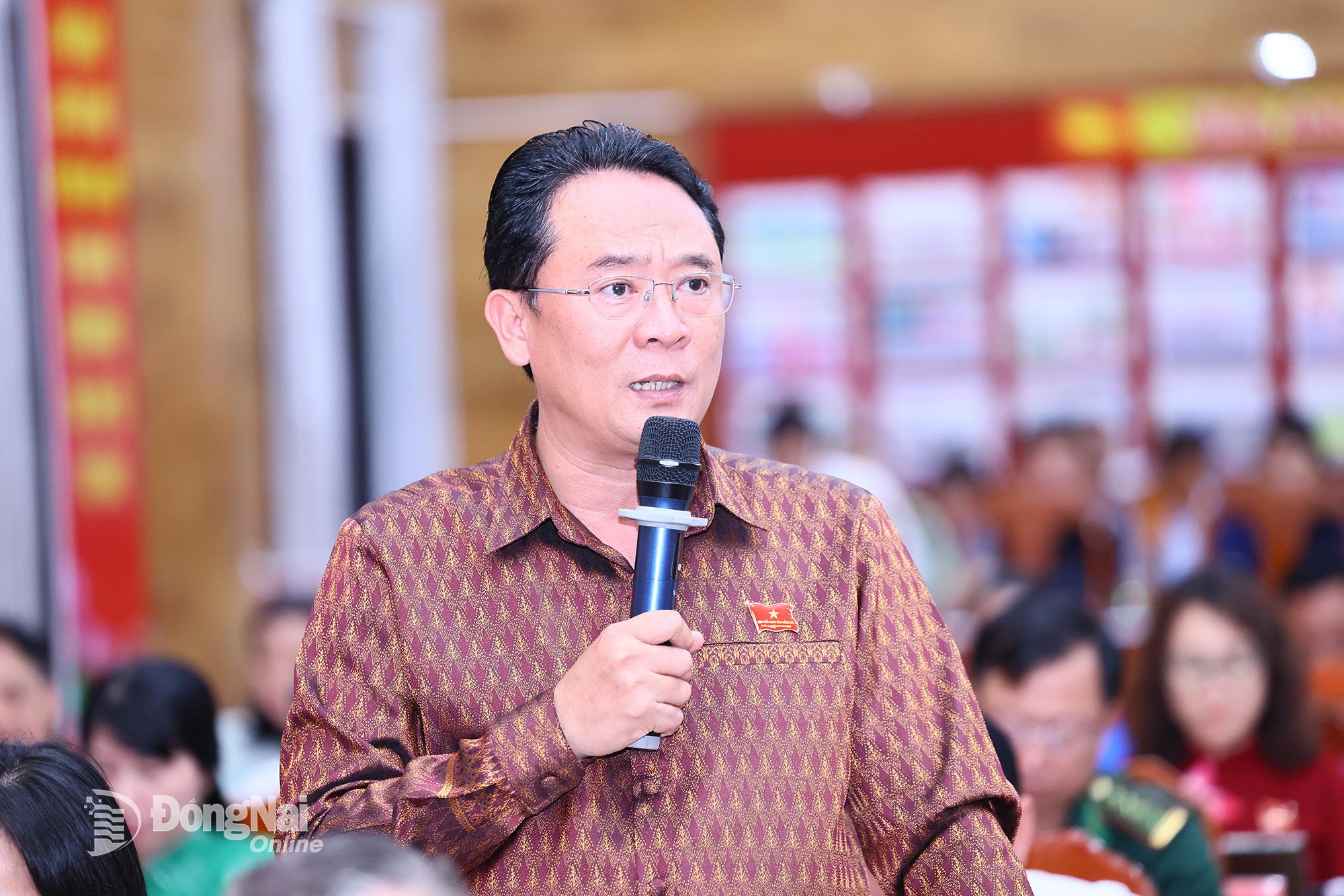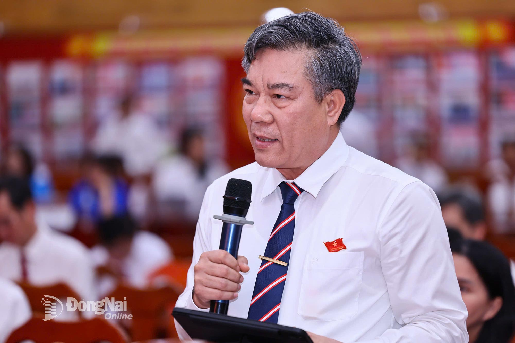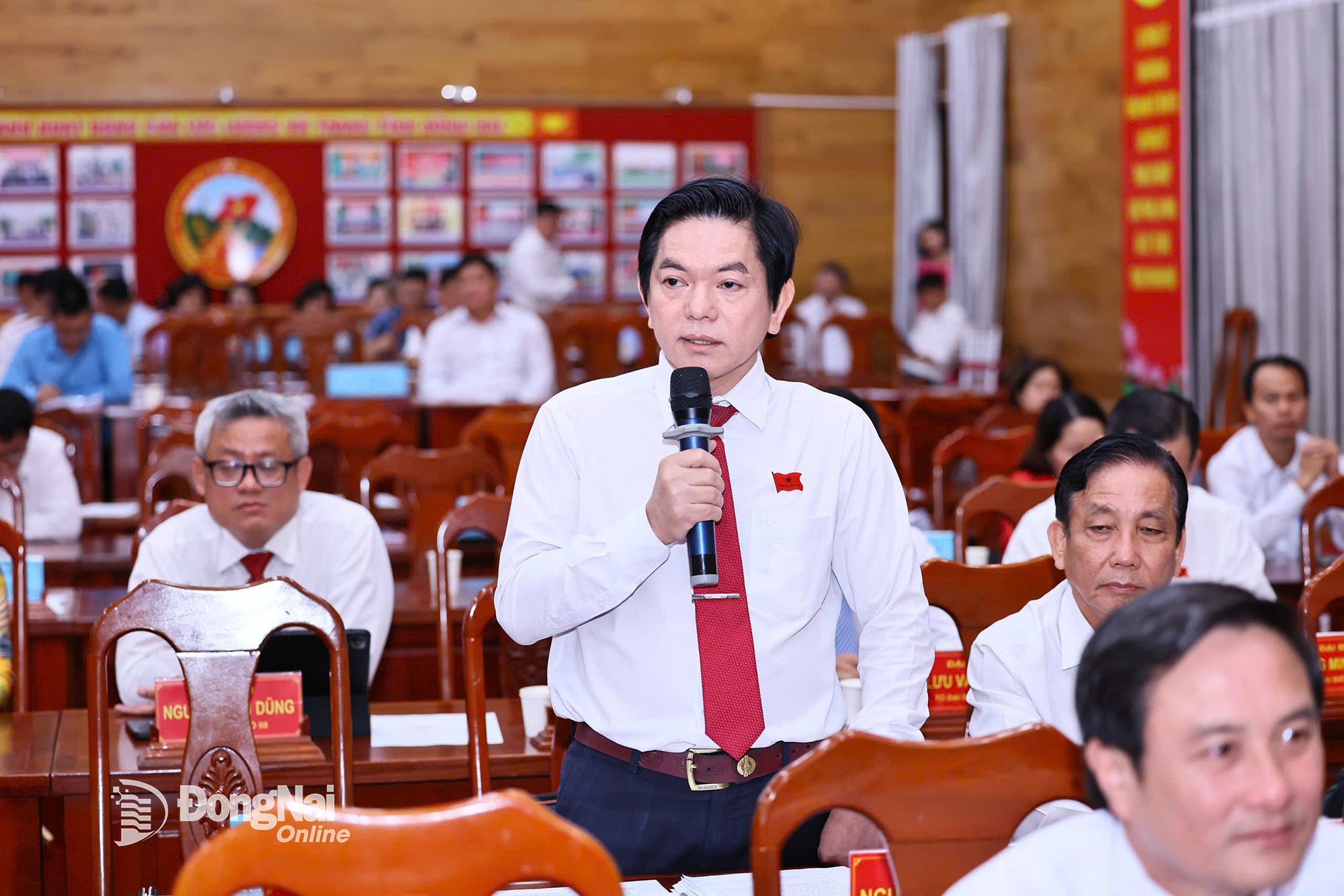 | Đại biểu Nguyễn Hữu Nguyên, Tỉnh ủy viên, Phó Chủ tịch Ủy ban MTTQ Việt Nam tỉnh, Chủ tịch Hội Nông dân tỉnh Đồng Nai phát biểu thảo luận tại kỳ họp. Ảnh: Công Nghĩa |