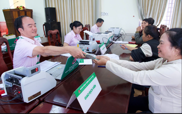 (Hình ảnh người dân vui mừng nhận tiền vay khi biết tin NHCSXH giảm lãi suất cho vay)