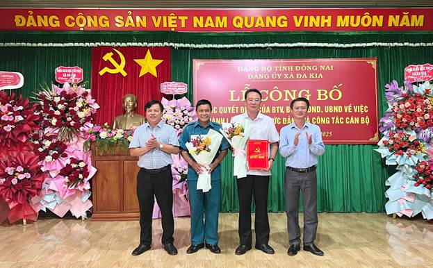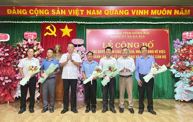Buổi lễ đã công bố các Quyết định tiếp nhận và bổ nhiệm công chức lãnh đạo quản lý đã được Sở Nội vụ tỉnh Bình Phước điều động nhận công tác tại UBND xã Đa Kia có thời hạn bổ nhiệm 05 năm kể từ ngày 01/07/2025. Trong đó, ông Nguyễn Xuân Nam giữ chức vụ Chánh Văn phòng HĐND và UBND xã; ông Phạm Văn Thức giữ chức vụ Trưởng Phòng Văn hóa – Xã hội; ông Nguyễn Văn Dũng giữ chức vụ Trưởng Phòng Kinh tế; ông Nguyễn Thành Hữu giữ chức vụ Phó Trưởng Phòng Văn hóa – Xã hội; ông Bùi Ngọc Thủy giữ chức vụ Phó Trưởng Phòng Kinh tế; bà Lê Thị Nga giữ chức vụ Phó Giám đốc Trung tâm Phục vụ Hành chính công.