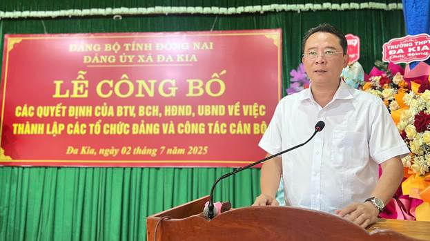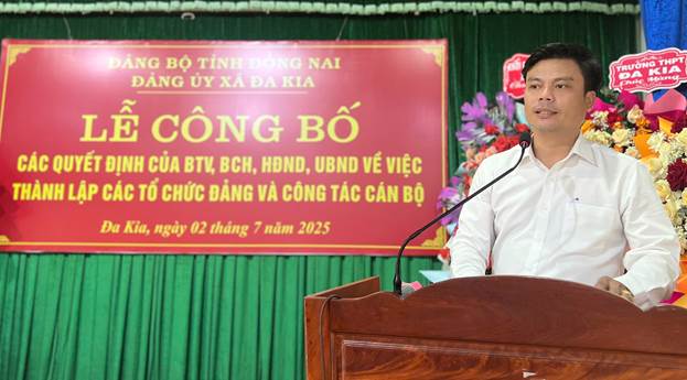 Chiều ngày 02-07-2025, Đảng ủy xã Đa Kia tổ chức Lễ công bố các Quyết định của Ban thường vụ, Ban chấp hành, HĐND, UBND về việc thành lập các tổ chức Đảng và công tác cán bộ. Đồng chí Lý Trọng Nhân, Tỉnh ủy viên, Bí thư Đảng ủy, Chủ tịch HĐND xã chủ trì buổi lễ.