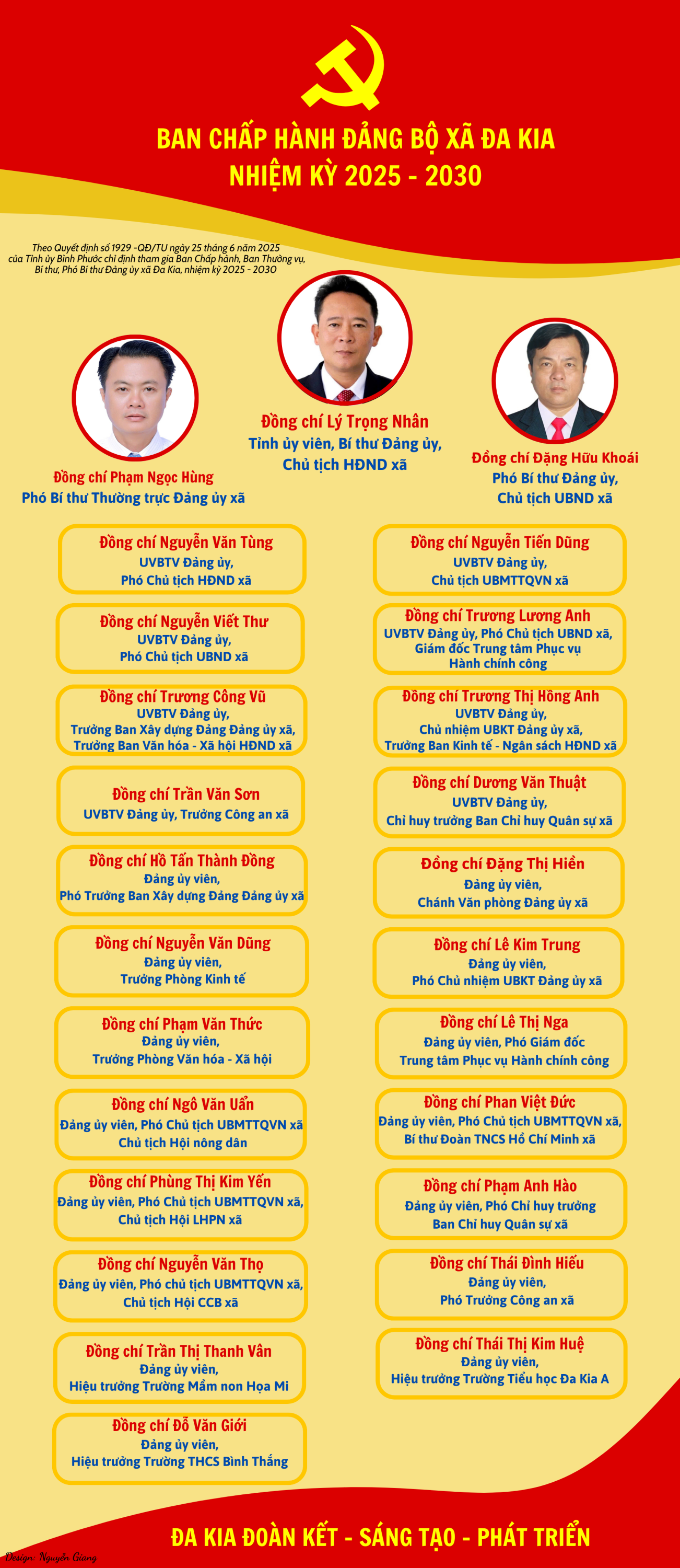 Dưới đây là Danh sách Ban Chấp hành Đảng bộ xã Đa Kia nhiệm kỳ 2025-2030: